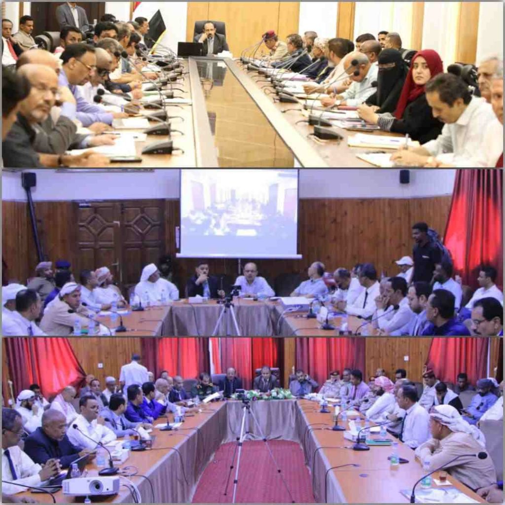كرّس الاجتماع الذي حضره الأمين العام للمجلس المحلي بالمحافظة صالح عبود العمقي ، ووكيل المحافظة لشؤون الوادي والصحراء عامر سعيد العامري، ووكلاء المحافظة، وقائدا المنطقتين العسكريتين الثانية والأولى ومديري الأمن بالساحل والوادي، وعُقد في آنٍ واحد في المكلا وعبر تقنية الاتصال المرئي بالمجمع الحكومي بسيئون، كرس لمناقشة أوضاع المحافظة وتطرق لأبرز احتياجات المواطنين.
