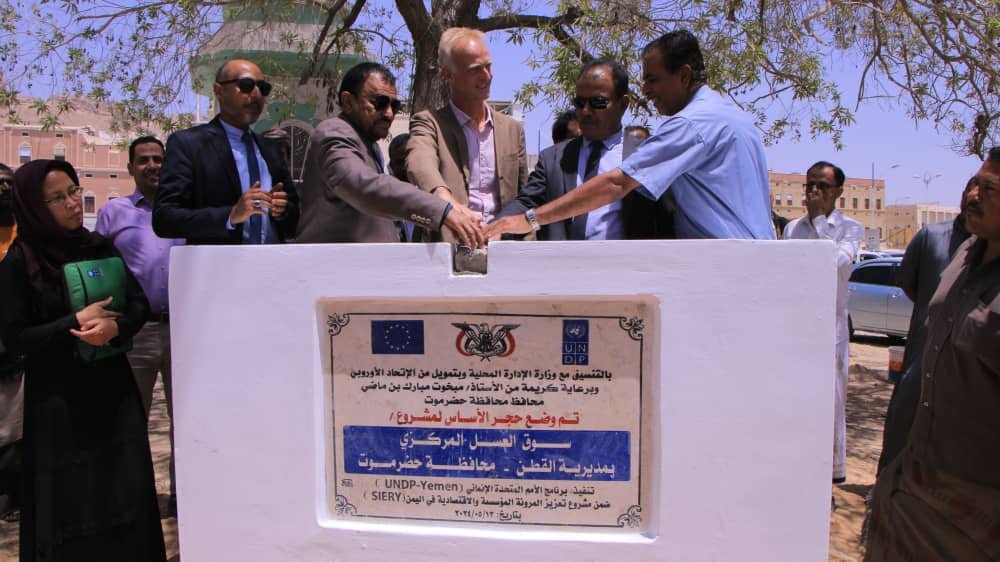 تم صباح اليوم بمديرية القطن وضع حجر الأساس لسوق العسل المركزي بالمديرية  الذي يُنفذه برنامج الأمم المتحدة الإنمائي UNDP ضمن مشروع تعزيز المرونة المؤسسية والإقتصادية في اليمن بتمويل من الإتحاد الأوروبي وبالتنسيق مع وزارة الإدارة المحلية.