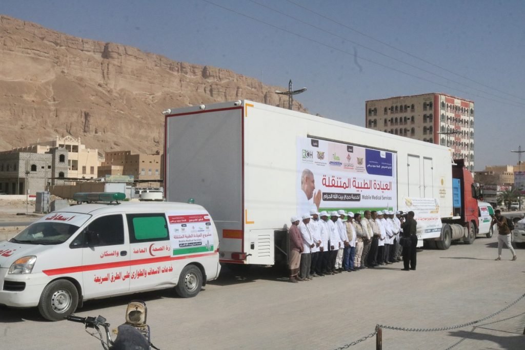 بدوره عبر مدير عام مكتب وزارة الصحة والسكان بوادي وصحراء حضرموت الدكتور / هاني خالد العمودي ان القافلة والعيادة الطبية لخدمة حجاج بيت الله الحرام بميناء الوديعة البري تتكون من عربة عيادات متنقلة تحتوي على عيادات ومختبر وأشعة وكل التجهيزات الأخرى وسيارتين إسعاف مع فريق طبي مكوّن من 15 فرد من الأطباء والفنيين والممرضين .