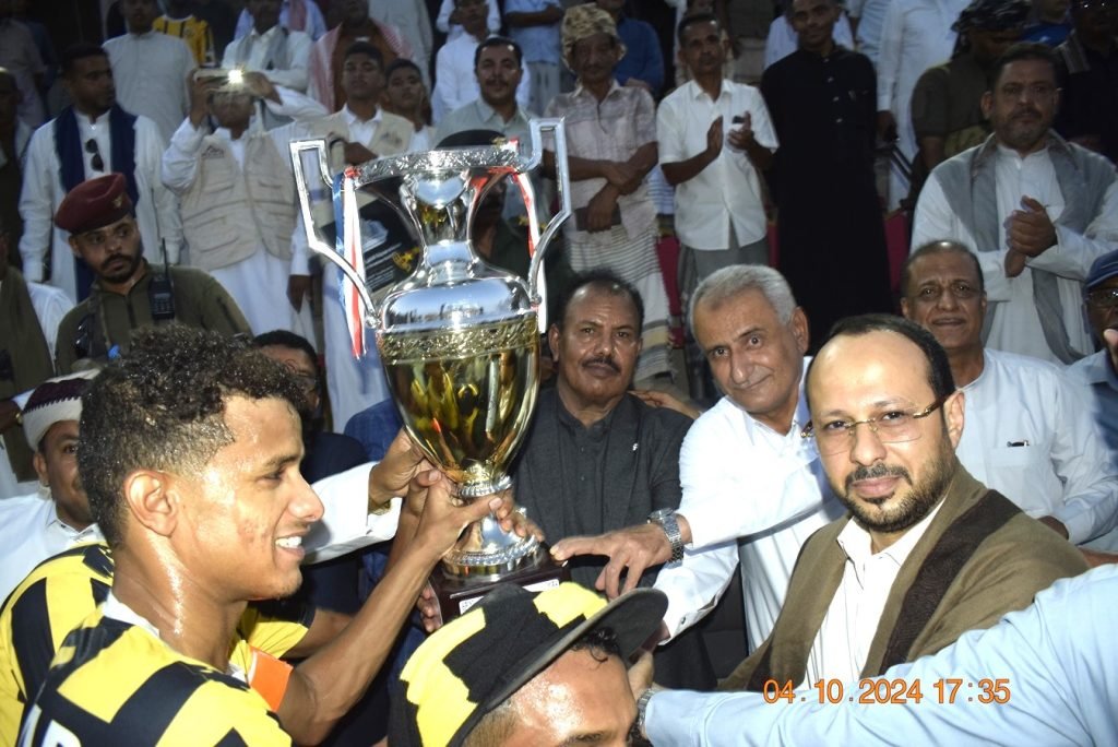 في ختام المباراة التي شهدت حضورا كبيرا اكثر من عشرين الفا من عشاق الرياضة بحضرموت الوادي ورابط مشجعي الفريقين، قام وكيل محافظة حضرموت لشئون مديريات الوادي والصحراء عامر سعيد العامري ووكيل المحافظ المساعد لشئون الشباب فهمي عوض باضاوي ومدير عام مديرية سيئون خالد صالح بلفاس ومدير عام مكتب وزارة الشباب والرياضة بحضرموت الوادي والصحراء الدكتور / مجدي سليمان مطران والأمين العام لفرع اتحاد كرة القدم بالوادي / قرزي مفتاح الزبيري ورئيس لجنة تنسيق اندية حضرموت الوادي خالد عبدالله العامري بتسليم فريق الاتحاد كأس بطولة تصفيات اندية الدرجة الثالثة بحضرموت الوادي والميداليات الذهبية وفريق سيئون كأس الوصيف والميداليات الفضية .