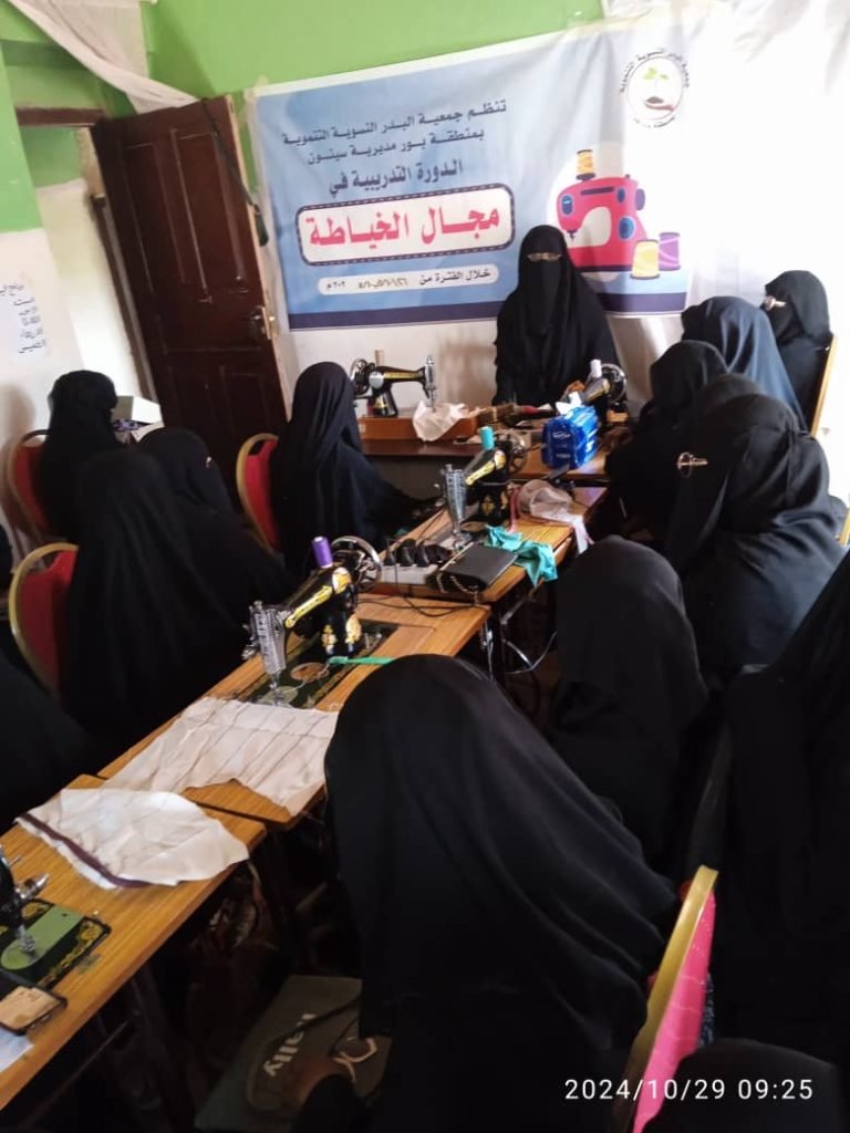 بدأت بمقر جمعية البدر النسوية التنموية بمنطقة بور بمديرية سيئون ، الدورة التدريبية للمبتدئات في مجال الخياطة بمشاركة (28) متدربة .