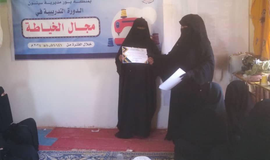اختتمت جمعية البدر النسوية التنموية بمنطقة بور مديرية سيئون اليوم دورة تدريبية للمبتدئات في مجال الخياطة و بمشاركة (28) متدربة تحصلن فيها على مجموعة من الحصص التدريبية في المجالين النظري و التطبيقي .