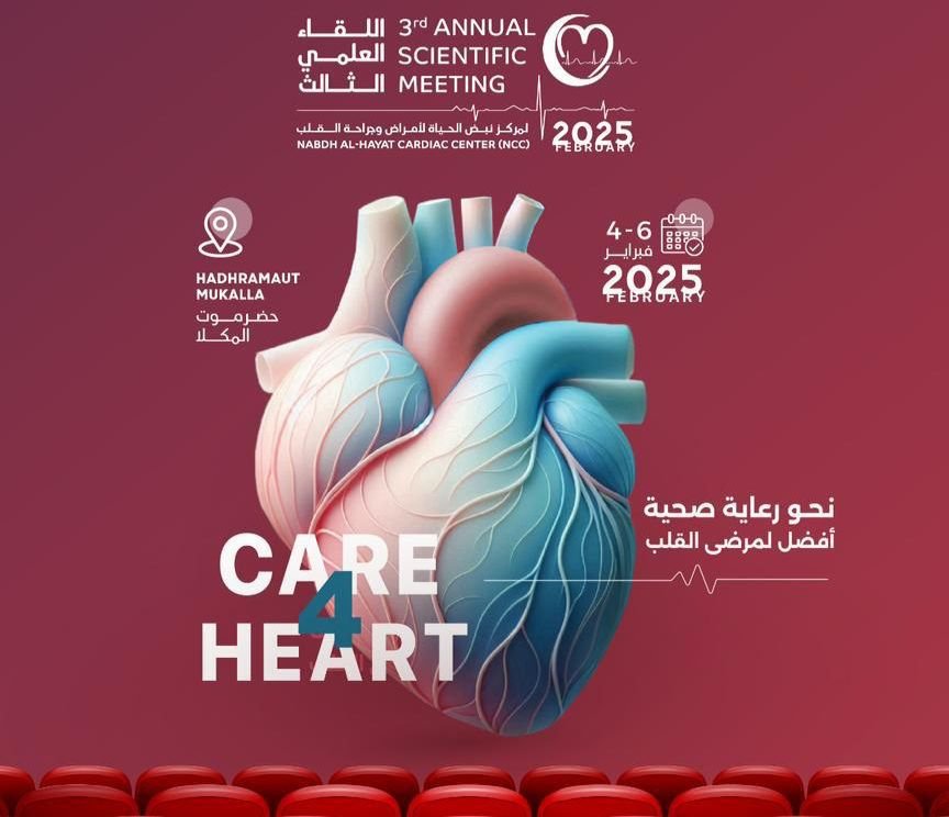 تنظم مؤسسة أمراض القلب الخيرية بمدينة المكلا اللقاء العلمي الثالث لمركز نبض الحياة لأمراض وجراحة القلب.