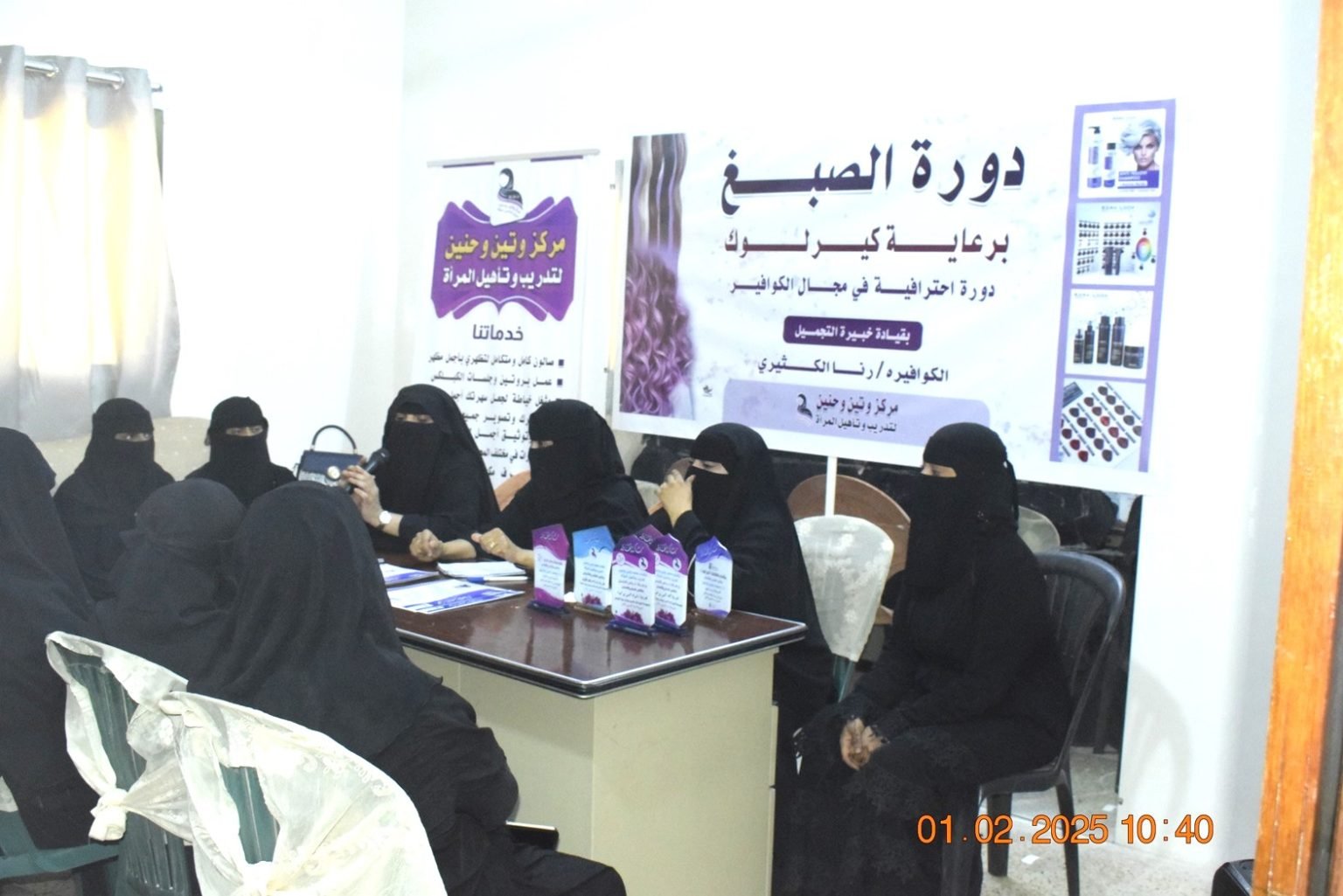 اختتمت اليوم بمركز وتين وحنين لتدريب المرأة بسيئون ثلاث دورات تدريبية متطورة في مجال الخياطة والكوافير والصبغ لعدد 82 امرأة وفتاة أقامها المركز بالشراكة مع اللجنة الوطنية للمرأة بحضرموت الوادي والصحراء.