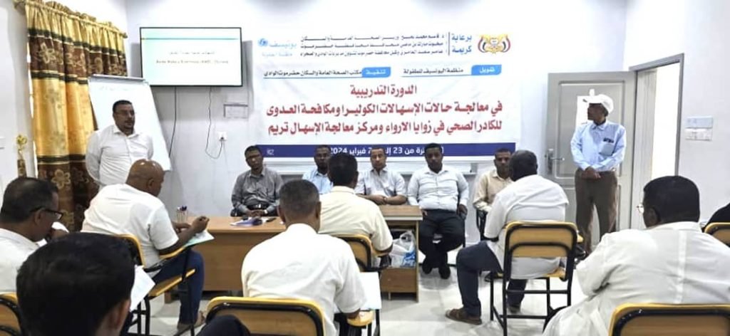 وسيتلقى المستهدفين من الكوادر الصحية في زوايا الارواء ومركز معالجة الاسهال بتريم على مدى يومين على معارف ومعلومات ومهارات وخبرات عملية ونظرية حول { كيفية تقييم حالات الإسهالات واختيار خطة العلاج المناسبة حسب تقييم الحالات وكيفية التعامل مع الاطفال المصابين بالاسهال المائي او المصابين بسوء التغذية الحاد الوخيم ،