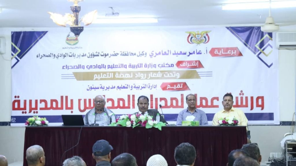 نظمت ادارة التربية والتعليم بمديرية سيئون، اليوم، وباشراف مكتب وزارة التربية والتعليم بوادي حضرموت والصحراء ، ورشة عمل لـ100 من مدراء مدارس مديرية سيئون ، تحت شعار “رواد نهضة التعليم”.