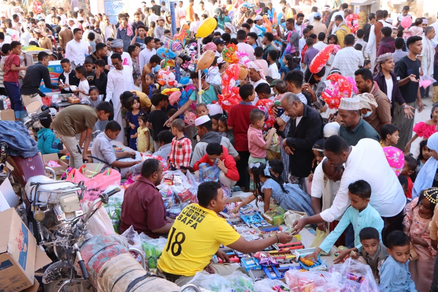 وشهد مسجد آل باعلوي ( الروشن ) بسحيل سيئون، عن بقية الأعوام حضورا مميزا وكبيرا من بعد عصر اليوم من الأطفال وآبائهم واقربائهم واخوانهم فرادا وجماعات يتجولون بين الباعة بكل اريحية دون ان يعكر صفوهم صوت المفرقعات وبين الالعاب الترفيهية يوزعون ابتسامتهم وفرحتهم فيما بينهم ويشترون ما يحلوا لهم بما يملكونه من مبالغ مالية أعطيت لهم من قبل أهلهم ، بينما شباب حي السحيل كعادتهم منتشرين وموزعين يتجولون في منع بيع المفرقعات داخل السوق الشعبي وكان ختما وسوقا شعبيا انموذج عن بقية ختايم مدينة سيئون التى مرت .