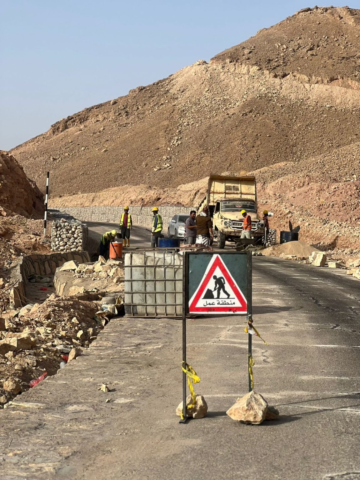 واطلع المدير العام بالمديرية على مستوى الإنجاز في مقاطع الطريق من السيلة إلى عمد و أعمال السفلتة في المقاطع خنفر ـ عمد و الأعمال الجارية في تنفيذ حمايات من المباني و الجابيونات و اعمال الرصف في مواقع مرور مياه الأمطار و السيول و ردم و تسوية أكتاف الطريق و تنفيذ أعمال صيانة خرسانية للجسور المتضررة من السيول واستكمال الأعمال في جسر عبارة عنق بعمد ..