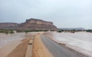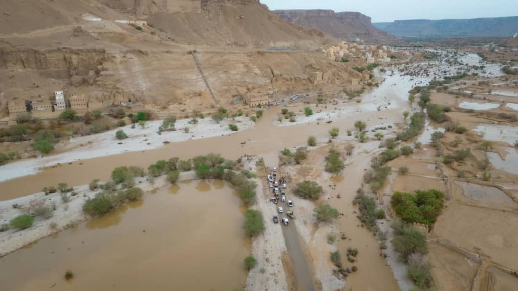 تدفق سيول كثيفة في معظم أودية وادي حضرموت جراء الأمطار الاخيرة التي شهدتها مدن الوادي