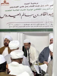 وكانت الجلسة الختامية للحولية قد عقدت بعد صلاة المغرب في مسجد العلامة العيدروس بحاوي بور بحضور الحبيب الداعية عبدالرحمن بن علي المشهور بن حفيظ ، حيث افتتحت الجلسة العلمية بقراءة ترجمة ضافية عن صاحب الحولية من قبل حفيده أبي بكر بن عبدالقادر العيدروس ، وقصيدة رثاء لصاحب الحولية من تلميذه الحبيب محمد بن سالم بن حفيظ رحمه الله ، بعد ذلك ألقيت كلمات من قبل الدكتور هاشم بن عبدالرحمن العيدروس والداعية شيخ بن صافي العيدروس و علوي بن أبي بكر العدني المشهور ، واختتمت الجلسة بكلمة للداعية عبدالرحمن بن علي بن حفيظ تطرقت جميعها لمناقب صاحب الحولية وجهوده العلمية و الإصلاحية في بلده بور وغيرها من البلدان ، و جوانب مهمة من حياته رحمه الله ، مع ما يحمله الإحتفال بالمولد النبوي الذي يتزامن مع هذه الحولية من معاني المحبة والتأسي بالنبي الاعظم صلى الله عليه وسلم والتي ينبغي غرسها في نفوس الأبناء ، معبرين عن شكرهم للأستاذ أبوبكر العيدروس ومركز بور الثقافي على الإهتمام بإحياء هذه المناسبات وما تمثله من ربط الجيل بتاريخ و أعلام هذه الأمة .