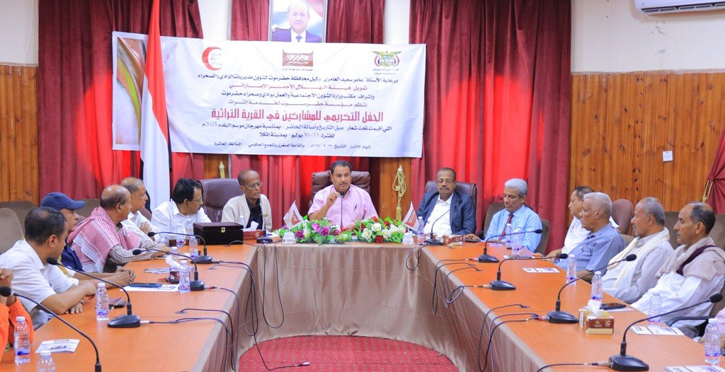كرمت مؤسسة حضرموت لخدمة التراث ، اليوم ، المشاركين في فعالية القرية التراثية التي أقيمت في مهرجان البلدة السياحي بمدينة المكلا هذا العام بتمويل من جمعية الهلال الأحمر الإماراتي تحت شعار ( عبق التاريخ وأصالة الحاضر ).