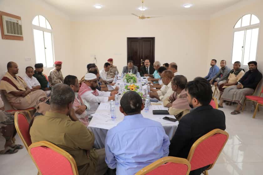 وناقش الاجتماع الذي حضره قائد المنطقة العسكرية الأولى اللواء الركن صالح الجعيملاني، ومدير عام مديرية ساه مبارك الجابري، وعدد من مدراء المرافق والمؤسسات الحكومية عدداً من التقارير المقدمة من المرافق الخدمية في المديرية، ووقف أمام جملة من القضايا الملحة التي تهم المواطنين، وفي مقدمتها خدمات الكهرباء والمياه والصحة، بالإضافة إلى خطط تحسين البنية التحتية وتفعيل الأداء الإداري والمؤسسي.