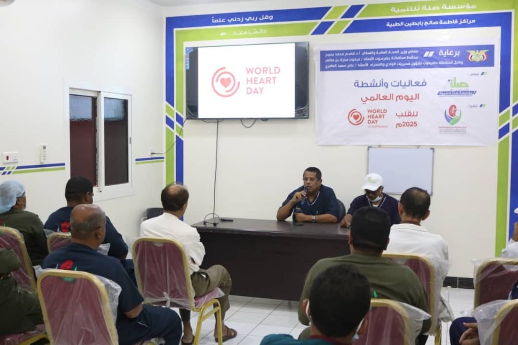 نظمت مراكز فاطمة بابطين الطبية لرعاية مرضى الفشل الكلوي بمديرية القطن،اليوم لقاء علمي طبي شارك فيه 25 من الأطباء والمختصين والكوادر الطبية من المركز ومستشفى القطن وذلك بمناسبة اليوم العالمي للقلب 2025.