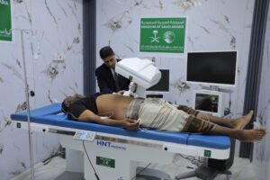 بدوره أوضح مدير عام مكتب الصحة العامة والسكان الدكتور هاني العمودي، ومدير مراكز بابطين لرعاية مرضى الفشل الكلوي مساعد برويشد، أهمية انشاء هذه الوحدة لتقديم خدمات علاجية نوعية لمرضى الكلى في ظل تزايد أعداد المصابين .. منوهين بأن الوحدة ستستهدف حوالي ثمانون حالة تفتيت شهريا من مختلف محافظات الجمهورية.
