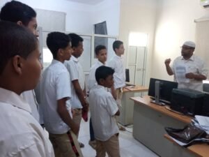و طاف طلاب المدرسة بمعية مدير المدرسة عبدالله سعيد بن حازب بأقسام الإذاعة المختلفة وتعرفوا خلال الجولة على آلية العمل في استديوهات البث المباشر وتقنيات الهندسة الصوتية ودور المكتبة الإذاعية في حفظ الإرث الثقافي والاجتماعي .