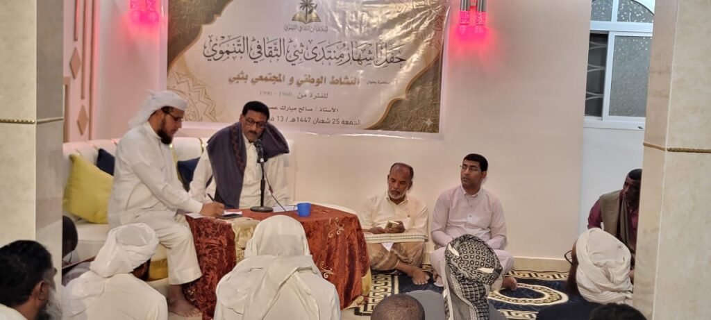 شهدت مديرية تريم إعلان إشهار منتدى ثبي الثقافي التنموي، في خطوة تهدف إلى تعزيز الحراك الثقافي ودعم المبادرات التنموية داخل المجتمع المحلي، وسط حضور عدد من المهتمين بالشأن الثقافي والاجتماعي.