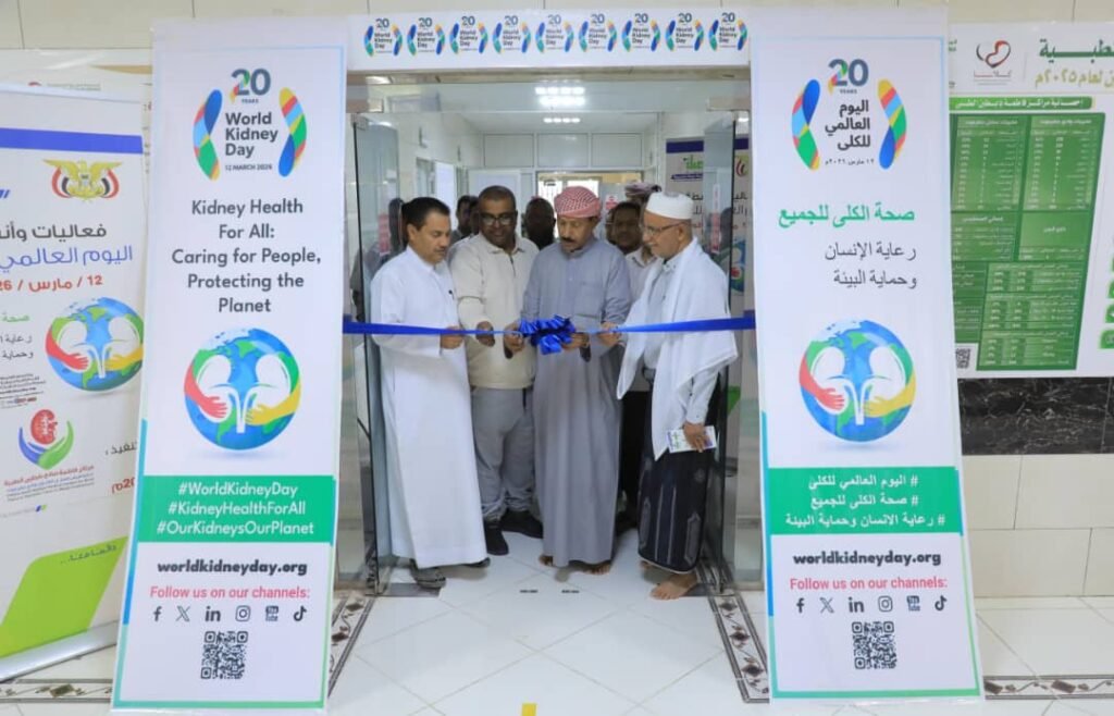 دشنت صباح أمس الخميس، فعاليات وأنشطة اليوم العالمي للكلى 2026م بمراكز فاطمة صالح بابطين الطبية لرعاية مرضى الفشل الكلوي بوادي حضرموت، وذلك تزامناً مع الاحتفال بهذا اليوم على مستوى العالم الذي يأتي هذا العام تحت شعار “صحة الكلى للجميع رعاية الإنسان وحماية البيئة.