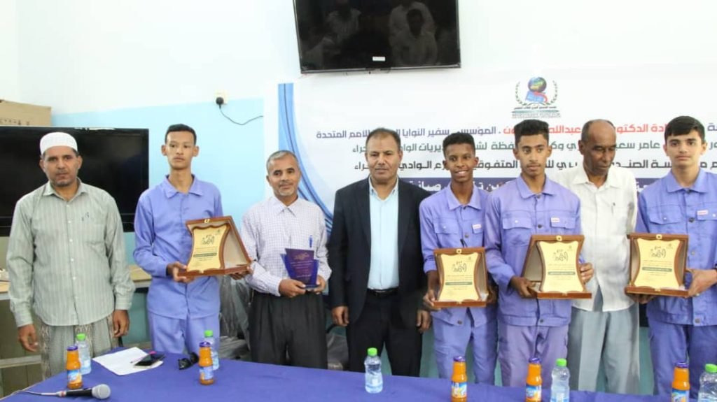 شهد وكيل محافظة حضرموت لشؤون مديريات الوادي والصحراء، الاستاذ عامر سعيد العامري، صباح اليوم، الحفل التكريمي الذي نظمته مؤسسة الصندوق الخيري للطلاب المتفوقين؛ للطلاب المبتكرين بقسم الالكترونيات بالمعهد المهني الصناعي بسيئون.
