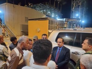 وقام محافظ حضرموت فور وصوله مطار الريان، مساء اليوم، بزيارة لمديرية الشحر اطلع خلالها على محطة الفقيد عوض السقطري، موجهًا بمعالجة أوضاع الكهرباء ومضاعفة الجهود لتحسين الطاقة للتخفيف عن المواطنين.
