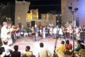 اختتمت يوم امس رابع ايام عيد الاضحى المبارك 1444هـ فعاليات القرية التراثية بحي السحيل بسيئون بإقامة تجسيد فلكلوري مسرحي حي بعنوان ( الماضي يصنع الحاضر ) قدمتها فرقة المسرح بحي السحيل ، عصرا للنساء فيما الغي العرض المسائي للرجال نتيجة لهطول الامطار علی مدینة سیئون .