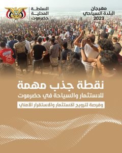 أقرّت السلطة المحلية بمحافظة حضرموت اليوم برنامج فعاليات مهرجان البلدة السياحي 2023م.