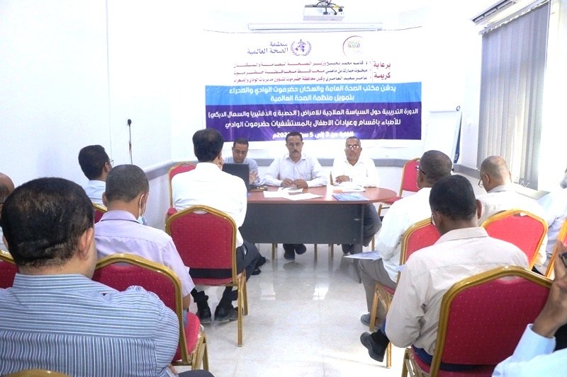 دشن مدير عام مكتب وزارة الصحة العامة والسكان بحضرموت الوادي والصحراء الدكتور / هاني خالد العمودي ، اليوم الدورة التدريبية في مجال ( السياسة العلاجية لأمراض [ الحصبة والدفتريا والسعال الديكي ] ) للأطباء بأقسام وعيادات الاطفال بمستشفيات وادي حضرموت ، التي يقيمها مكتب وزارة الصحة ( ادارة الرعاية الصحية الاولية ) ، بتمويل من منظمة الصحة العالمية .