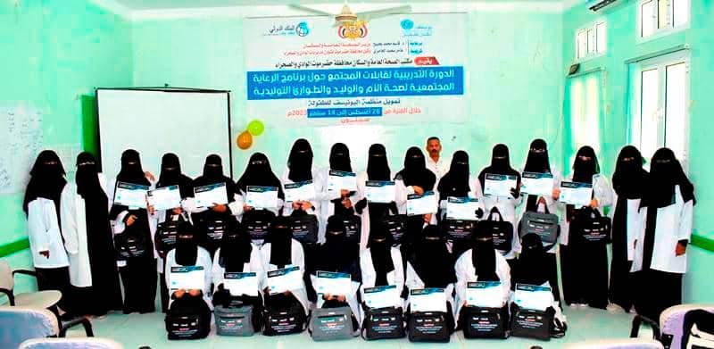 وتلقت 20 قابلة من قابلات المجتمع من مديريات الوادي والصحراء الدفعة الثانية على مدى 18 يوم على معارف ومفاهيم وخبرات علمية نظرية وتطبيقية وفقا والدليل الوطني للرعاية الصحية المجتمعية في صحة الأم والوليد والطوارئ التوليدية والوليدية ، عبر اربعة محاور رئيسة حول ، برنامج الرعاية المجتمعية لصحة الأم والوليد – الاهداف والمكونات ، الزيارات المجتمعية والرعاية اثناء الحمل ، الرعاية اثناء المخاض والولادة وبعد الولادة ، الرعاية الفورية للوليد والرعاية خلال الشهر الاول من عمره ، من قبل مدربات الدورة ( اسرار الخطيب ، نعائم بن هشمان ، انتصار يانقيل ، اماني بامنقر ) .