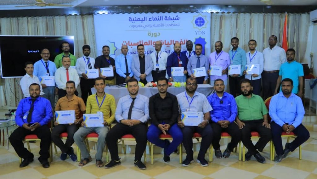 اختتمت أمس ، بسيئون في محافظة حضرموت دورة تدريبية حول الإدارة الحديثة في تنسيق الفعاليات والمناسبات نظمها مكتب شبكة النماء اليمنية للمنظمات الأهلية بوادي حضرموت .