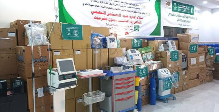 تسلم المستشفى التخصصي لأمراض وجراحة القلب بسيئون في محافظة حضرموت ، اليوم ، أجهزة طبية ممولة من مركز الملك سلمان للإغاثة والأعمال الإنسانية عبر الشريك منظمة الصحة العالمية بتكلفة بلغت تكلفتها 340 ألف دولار .