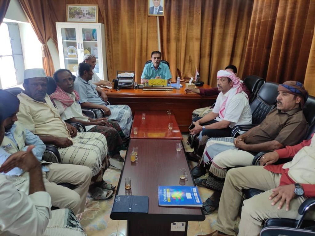 وشدد المدير العام خلال لقائه وفد منظمة ( الفاو ) برئاسة مدير مشروع تعزيز الصمود التابع لمنظة الأغذية والزراعة (الفاو) المهندس عبدالله العيدروس والشريك المحلي أئتلاف الخير للاغاثة والأعمال الانسانية ممثلا بالاخ عبدالله بن احمد باتيس ورؤساء اللجان المجتمعية من قيادة جمعيتي مستخدمي المياه في منطقتي هينن ومنوب بدء سير العمل في المشروع في مناطقهم.