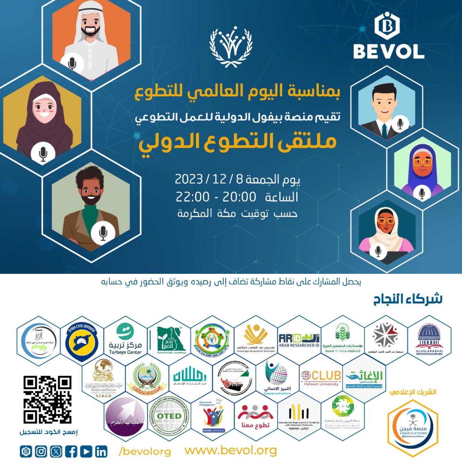 نظمت منصة بيفول العالمية ملتقى التطوع الدولي (عبر منصة زووم)، وذلك بمناسبة اليوم العالمي للتطوع وبمشاركة واسعة من المؤسسات المختصة بالعمل الخيري والتطوعي من مختلف الدول العربية وغير العربية.