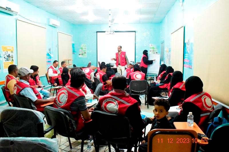 ويقوم بالتدريب في هذه الدورة التي تقيمها جمعية الهلال الأحمر اليمني بتمويل من الإتحاد الاوربي للمساعدات الإنسانية ضمن مشروع برنامج الشراكة البرمجية التجريبية ضابط المشاركة المجتمعية والمسائلة حمدي عبدالحافظ مبارك ومدير التخطيط والتقييم والمتابعة رانيا علي الشبيبي .