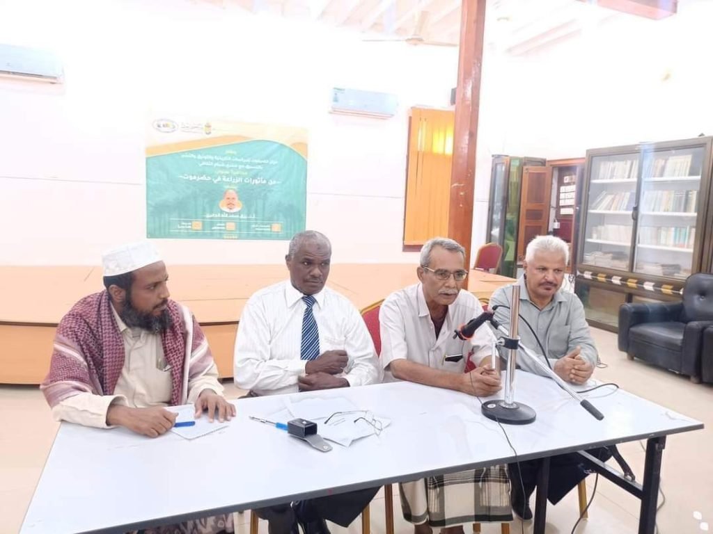 و أشار الدكتور رزق في محاضرته عن حالة الإكتفاء الذاتي في الجانب الزراعي بحضرموت قديما نتيجة لإلمامهم وإهتمامهم بالزراعة ومواسمها المختلفة والتي تتناسب مع المناخ على مدار فصول السنة وزراعتهم لعدد كبير من المحاصيل الزراعية والتي لم تعد موجودة في وقتنا الحاضر .